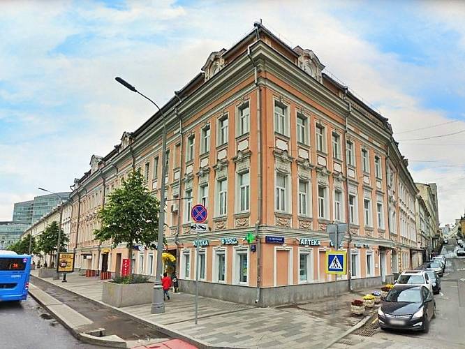 Особняк расположен в ЦАО столице. До ближайшей станции метро Трубная можно дойти пешком за 4 минутыт. Здание общей площадью 770 кв.м было построено в 1991 году. Так же имеет развитую инфраструктуру района.