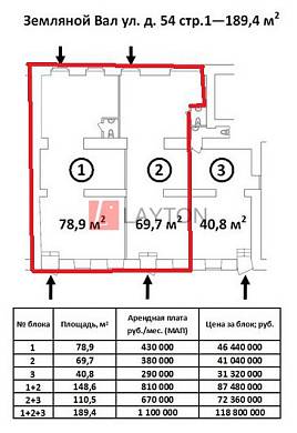 | Цена за м2 | Площадь | 496 216 руб | 148 м2 | За помещение | 73 439 968 руб |